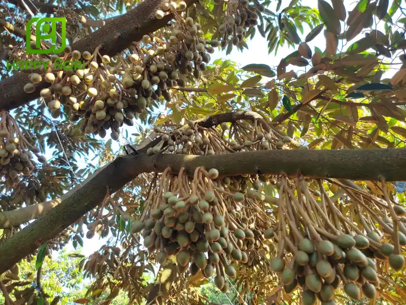 - Phòng trừ sâu bệnh: Sâu bệnh là một trong những nguyên nhân gây ảnh hưởng đến quá trình ra hoa và đậu trái của sầu riêng. Bà con cần thường xuyên kiểm tra vườn cây, phát hiện sớm các loại sâu bệnh gây hại như rầy xanh, bọ trĩ, nhện đỏ, nấm bệnh... và có biện pháp phòng trừ kịp thời. Happy Agri cung cấp các loại thuốc bảo vệ thực vật có nguồn gốc sinh học, an toàn cho người sử dụng và môi trường, giúp bà con bảo vệ vườn sầu riêng một cách hiệu quả.